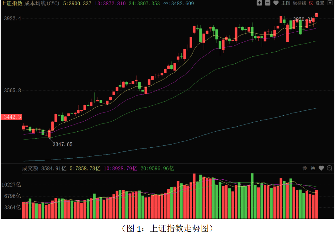 消息面,中美新一轮经贸会谈,就有关议题建设性地探讨了一些妥善处理双方关注的方案,形成了初步共识,良好的会谈开端积极利好资本市场,有助于市场风险偏好的进一步提振和股市的稳步上行。从上证指数走势来看:上周股指连续震荡上行并走出8月底以来的震荡区间,技术上形成突破走势。主要原因,第一点:前期早评多次提醒过,节后行情的震荡走势,是小幅突破后的回抽确认走势,技术上沿着5日、13日成本均线稳步上行,走势较为稳健。第二点:中美进入新一轮经贸会谈,会谈比预期要早,利好市场。第三点:也是最重要的一点,“四中”全会公报发布,“十五五”规划路线目标逐步清晰。周末中美会谈传来积极消息,有助于市场惯性向上冲击。后续随着“十五五”规划建议的定性和定量政策的落地和预期,加上盘面上科技制造板块经过超跌休整之后再度走强,有望进一步激发市场风险偏好的提升。“十五五”规划在强化科技政策支持的同时,扩大内需等政策有一定预期空间,对中期涨幅较小的消费、周期类板块或形成波段上涨的驱动,市场近期有冲击4000点大关的政策和资金面基础。目前股指上方的技术压力位在6124点和5178点连线的下降趋势线位置,点位在4100-4200点一带。4000点附近既是重要的技术关口,又是重要的心理关口,由于短期市场成交量没有明显放大,在4000点大关位置冲击前后可能会有所反复。下周上市公司三季报业绩披露完毕,业绩风险释放完毕之后,市场会聚焦12月底的中央政治局会议的政策定调,这是明年政策的部署,随后“十五五”规划定量政策逐步明朗,政策支持的科技、消费、高端制造、国防安全等方向的结构性机会会轮番活跃,尤其是当前低位或调整充分的前期主线机会较大,投资者应积极把握。从0Z指数走势来看:该指数连续回探确认无穷成本均线之后再度小幅上涨,上周多空资金净流入超2600亿元,资金再度强化作为牛熊分水岭的无穷成本均线的支撑作用。近期高点和筹码密集峰位置技术上仍有一定压力,尤其是股指冲击4000点位置时可能会有短线的震荡。但是,如果后续多空资金能够持续进场,股指有望呈现稳健上行和缓慢突破的走势。从短期结构牛(大盘)指标来看,马股比例明显回升至67%左右;牛股比例15%有拐头向上的趋向;熊股比例开始明显拐头向下。说明市场个股风险得到一定的释放,低位或调整充分的个股资金开始回补走强。随着中美会谈的积极成果释放,以及资金风险偏好的提升,马股数量有望进一步向牛股转化,市场机会相比前期会有所增加。不过,也要注意部分反弹品种在前期高点位置再度分化的可能。操作上应采取稳中有进的策略应对,总仓位控制在7成左右,底仓持股为主,浮动仓位可根据政策和资金流向抓好结构性机会。