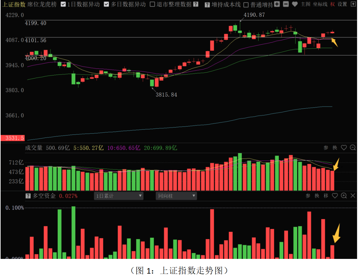 从上证指数走势来看:股指连续反弹、微幅上涨,继续呈现窄幅震荡的走势,多空资金净流入161.40亿元,较前一日净流入量略有提升,成交量继续萎缩,显示多空双方总体处于相对平衡状态,资金观望气氛继续延续。主要原因,时间点上春节假期临近,资金整体做多积极性明显下降;技术位置上,股指连续反弹至前期高点位置,前高位置是交易所提高融资保证金政策调整的位置,叠加春节假期效应,当前位置有一定的心理和技术压力。从板块结构来看,70个板块中35个板块上涨,35个板块下跌,板块上涨家数较前一日小幅提升。不过,板块轮动节奏明显加快,前几日活跃的人工智能应用、旅游餐饮、商业航天等板块再度回落;而前期调整较为充分的金银价格有所反弹或企稳带来有色资源品的强势反弹。总体上,近期活跃板块仍是以“高低切换”为主,部分板块强势反弹临近前期放量高点位置,尚未出现反转向上的走势,热点快速轮动和高低切换一定程度相互对冲制约市场的整体表现。节前走势上,今日盘中可能继续会面临部分避险资金的抛压,对大盘指数会形成一定的承压。不过,在稳预期政策和全力巩固资本市场稳中向好势头,防止市场大涨大跌的政策基调下,农历新年收官市场总体会以平稳向好的走势为主,在重要节日关口,虽然部分板块指数面临前期放量高点的压力,制约市场整体活跃度,但不排除大金融板块会有阶段性表现维护市场稳定的可能。节后市场走势,主要关注假期期间外围的影响,如果外围市场走势平稳,节后市场会维持震荡上行的格局。一方面今年是“十五五”开局之年,政策对经济增长会保持一定力度的稳定性和持续性,甚至有超预期的政策储备。同时,每年一季度是全年政策发力的重要阶段,在去年三季度和四季度GDP增速低于5%的背景下,今年一季度政策总体力度较强,叠加节后两会的召开,春季行情震荡向上的逻辑相对确定。从优化布林线指标来看,目前股指在中下轨位置得到技术支撑后站上中轨位置,波段上升趋势有所好转。由于节前资金惜售和观望态度增加,多空双方处于相对平衡状态,中轨位置是否能有效站稳,还需节后走势进行确认。同时,该指标处于逐步收口状态,节前股指运行空间在4100-4200点区间,属于强势运行状态,后续指标收口趋紧之后,会再度面临方向选择。从0Z指数走势来看:股指冲高后小幅回落,多空资金净流入223.79亿元,在成交量继续萎缩和活跃市值连续明显下跌的背景下,短期上行动力不足。昨日全市场下跌个股家数和上涨个股家数比继续维持在3:2,下跌个股持续多于上涨个股家数,节前赚钱难度有所增加,短期股指会围绕5日、13日成本均线震荡为主。当前操作上应继续采取稳健策略应对,节前总仓位控制在六成左右,底仓持股为主,浮动仓位不宜激进追涨,对于短线超跌反弹或上涨至重要技术压力位的品种,应根据关键位置资金流向和短线决策信号做好仓位调整。