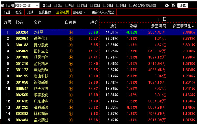 【今日多空资金增仓前200名中涨幅最小的15只个股】