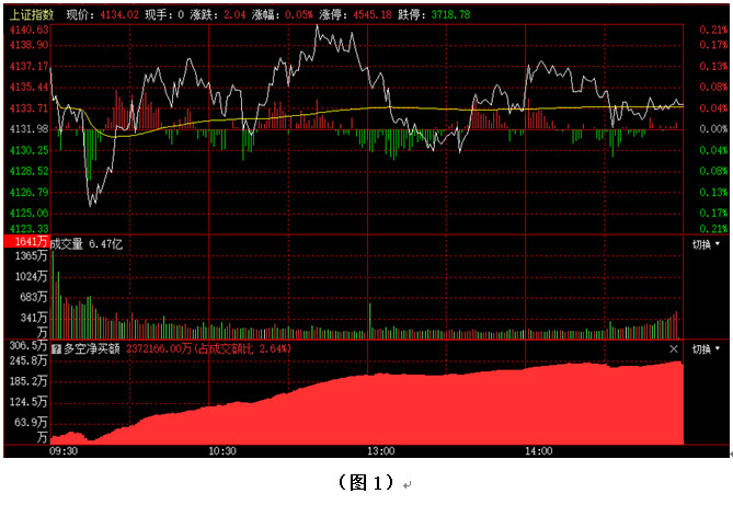 如图1所示,今日早间大盘小幅高开,指数先是略作回探,随后开始逐步向上攀升,盘中一度摸至4140点上方,可惜市场依然无法持续上攻,午后大盘重新回落至昨日收盘点位附近,虽没有进一步下探,但也无法向上发起有力冲击,指数最终以4134点收盘。从下方的多空资金来看,早间开盘后,多方就占据优势,随后资金持续流入,午后大盘虽出现回落,但资金进场的力度却丝毫不减。可见今日场外资金仍在积极进场加仓,多方力量远远强于空方。在这种情况下,市场下方基础就会被多方不断夯实,有利于后市行情继续向上攀升。建议大家积极关注近期有资金连续流入且短期趋势保持向上的个股,在板块轮动过程中,逢低吸纳。