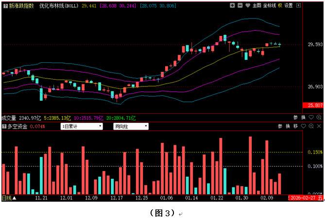 今日两市上涨个股共1995只,其中涨幅超过3%的个股479只,涨幅在9.9%以上的个股85只;下跌个股共3109只,其中跌幅超过3%的个股266只,跌幅在9.9%以上的个股20只。图3所示为指南针特有的0Z指数K线图,从图中可以看到,今日0Z指数继续小幅收阴,不过收盘位置依然保持在优化布林中轨上方。可见今日情况与前两日大体相同,场内多数个股既没有继续向上拉升,也没有出现大幅回落,但市场整体走势仍相对较强。从下方的多空资金来看,今日多空资金为流入状态,且资金流入量较昨日有所放大,说明多数投资者对后市依然较为看好,所以在无重大利空因素影响的情况下,场内突然出现大规模抛售的可能性很小,后市行情或将在资金的推动下继续震荡上行。
