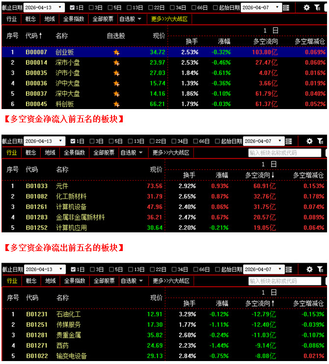(4月13日午评,北京指南针科技发展股份有限公司提供)